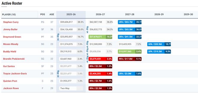 勇士连签4人大名单凑13人:勇媒晒图暗示养老大队 潜在先发180岁