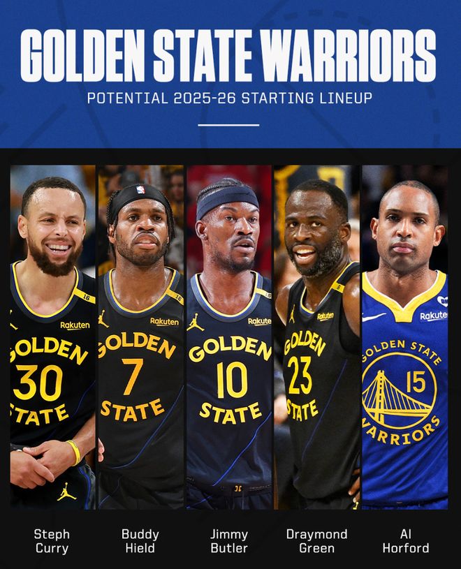 ESPN晒出目前潜在的先发五虎:库里37岁、希尔德33岁、巴特勒36岁、追梦35岁、霍福德39岁,这潜在的先发合计180岁,平均年龄高达36岁,这样的阵容如何去冲击总冠军?这与邓利维所说继续帮助库里冲击总冠军的言论似乎背道而驰。