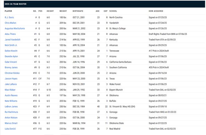 前锋:詹姆斯、八村垒、拉拉维亚、范德比尔特、克内克特、克勒贝尔、蒂耶罗、安通-沃特森。