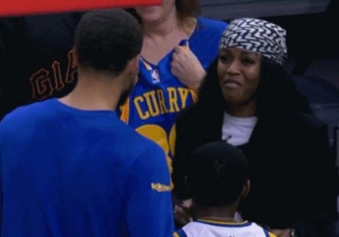库里因为脚踝伤势缺席,赛前与小球迷合影留念极为暖心。