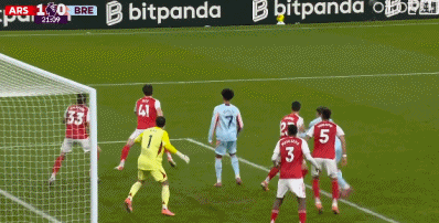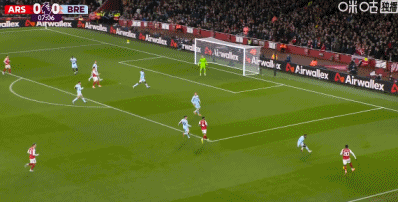 第11分钟,本-怀特送出传中,梅里诺头球破门!阿森纳1-0布伦特福德